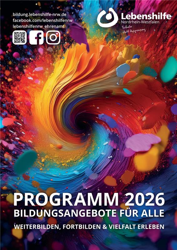 Das Seminar findet Online via ZOOM statt. Voraussetzung für die Teilnahme ist ein Internetzugang sowie ein entsprechendes Endgerät. Wir empfehlen einen PC oder Laptop mit einem aktuellen Browser. Alternativ ist der Zugang auch mit dem Smartphone oder Tablet (via App) möglich. Für Ton und Bild sind Mikrofon und Kamera erforderlich, in Laptops und mobilen Endgeräten ist beides in der Regel verbaut. Falls Sie kein Mikrofon/Headset besitzen, können Sie sich per Telefon zuschalten. Diese Verastaltung wird von der Lebenshilfe Bildung NRW gGmbH durchgeführt. E-Mail: fortbildung@lebenshilfe-nrw.de, Telefon: 02233 93245-0 | Zusatz | Sem. Nr. 2026-PA-213 |
